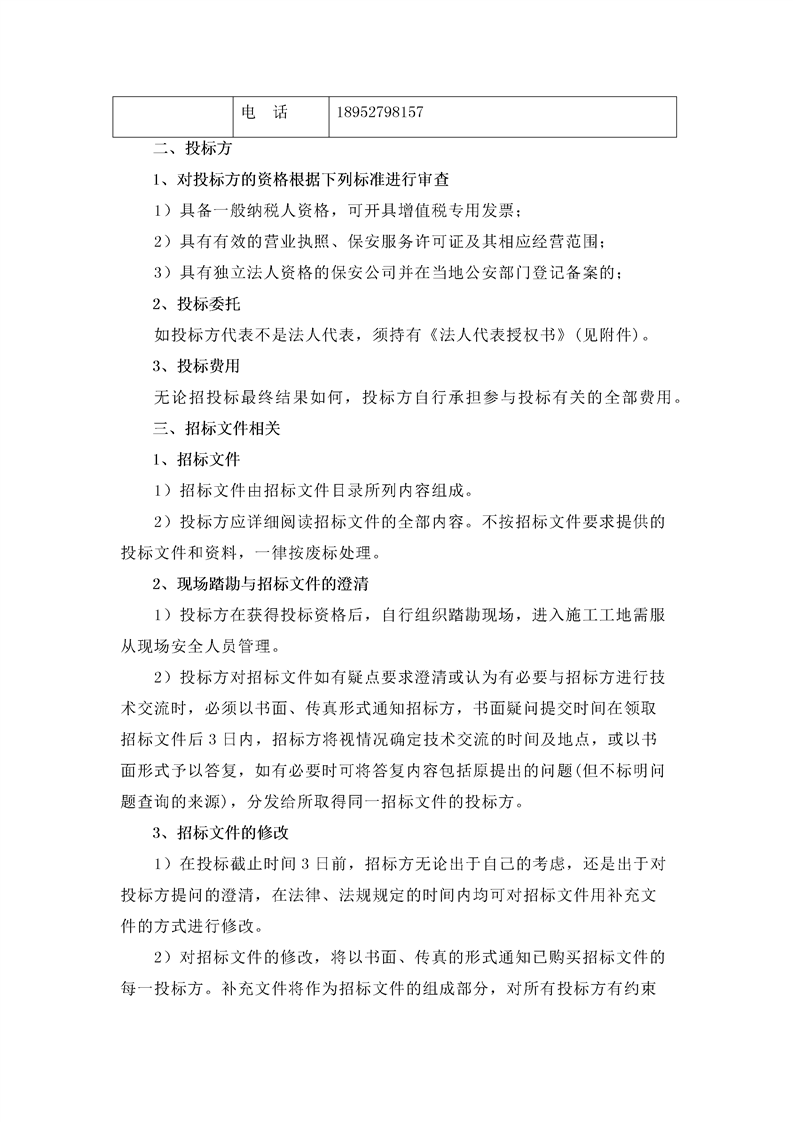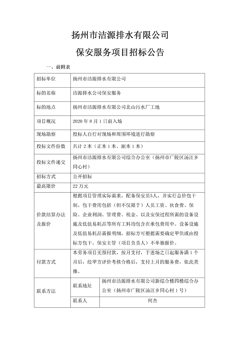 潔源排水公司保安服務(wù)招標文件(北山污水廠工地).docx