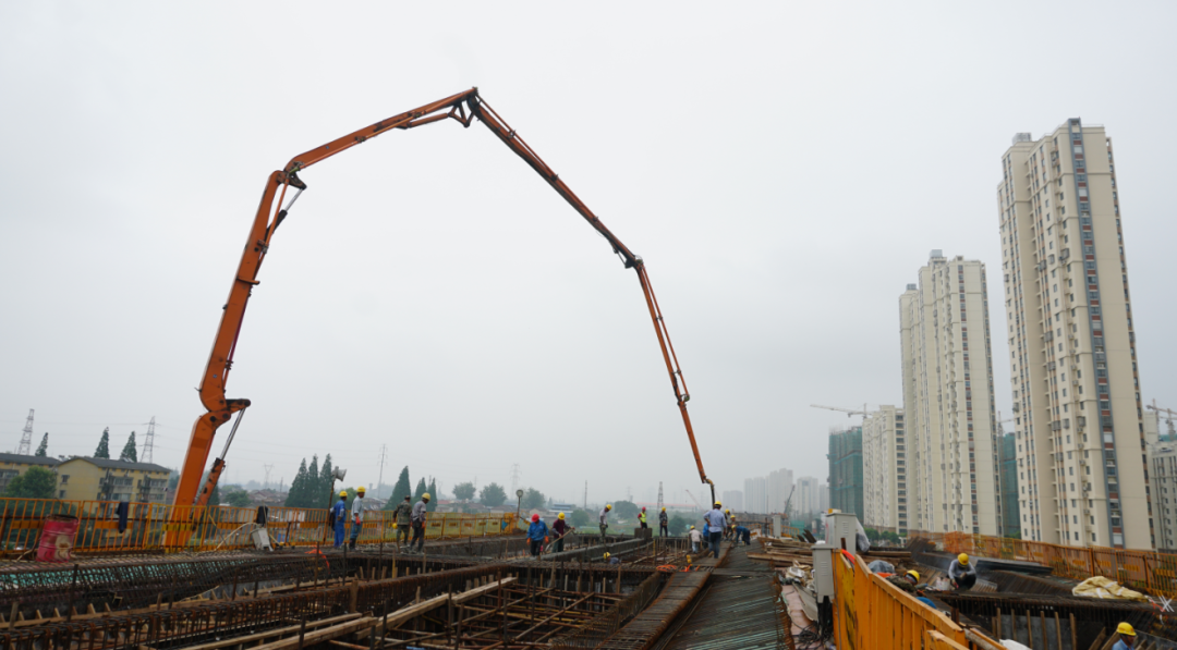 運(yùn)河南北路快速化改造二期工程(萬(wàn)福西路-物港路北)項(xiàng)目包括運(yùn)河路高架橋及萬(wàn)福路互通樞紐,主線全長(zhǎng)2.49公里。其中橋梁全長(zhǎng)5135.753米,包含運(yùn)河路主線橋2490.85米、上下匝道橋577.8米、萬(wàn)福路互通匝道橋2067.103米。互通匝道分為A、B、C、D四條匝道,是連接萬(wàn)福快速路和運(yùn)河路的交通樞紐,此次澆筑的箱梁底腹板為A匝道首聯(lián),共計(jì)澆筑混凝土300多方。