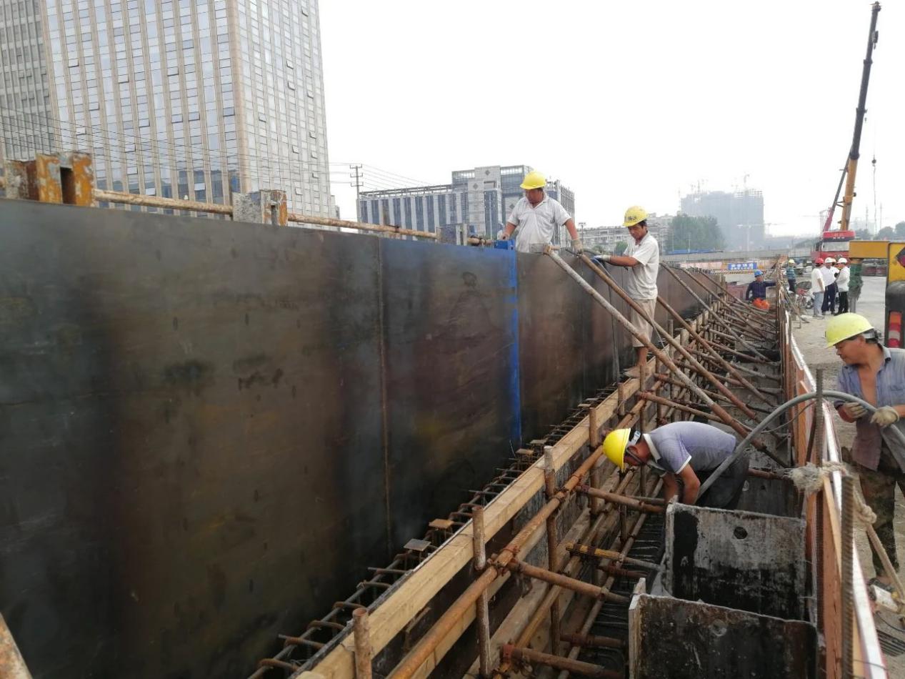 為了確保首段側(cè)墻順利澆筑,澆筑前,項(xiàng)目部多次邀請(qǐng)?jiān)O(shè)計(jì)方、建設(shè)方、施工方、監(jiān)理方相關(guān)人員對(duì)側(cè)墻預(yù)埋件及防水體系進(jìn)行研討優(yōu)化。澆筑中,嚴(yán)格控制混凝土振搗質(zhì)量、鋼筋加工及安裝施工質(zhì)量,強(qiáng)化安全措施,加強(qiáng)現(xiàn)場(chǎng)管理。同時(shí)針對(duì)側(cè)墻較高的特點(diǎn),提前支好預(yù)制的鋼側(cè)模,進(jìn)行分層澆筑,確保施工質(zhì)量。