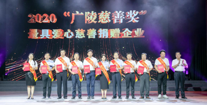 9月5日,在廣陵區舉辦的“向上向善?一路有你”公益慈善演出活動上頒發了“廣陵慈善獎”獎項,城控集團被授予“最具愛心慈善捐贈企業”榮譽稱號。城控集團黨委書記、董事長葉善祥應邀出席。