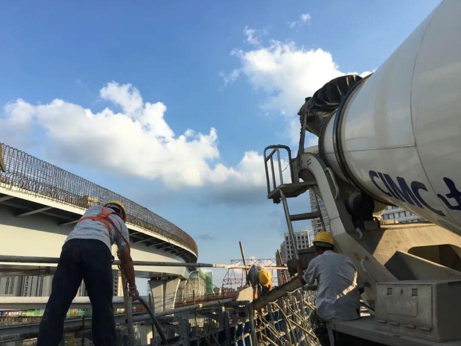 自防撞護欄施工以來,項目部多措并舉,綜合管控現場施工安全及質量,保證橋面系及防撞護欄施工穩步推進。面對防撞護欄施工圓曲線半徑較小、鋼筋預埋準確度控制難度大、鋼筋線型調整難度大等難題,從測量放線、立模校正到澆筑砼,全程設專人盯控,嚴格“三檢”制度,堅持“樣板引路”,抓好質量管控。同時,多次組織召開防撞護欄“回頭看”等專題會議,不斷總結經驗、優化施工方案,平穩有序推進施工進度。