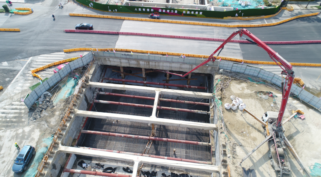 10月25日14點(diǎn)10分,運(yùn)河南北路快速化改造工程文昌中路隧道蓋板區(qū)細(xì)石混凝土全部澆筑完成。至此,文昌中路隧道基坑封底工作全部結(jié)束!