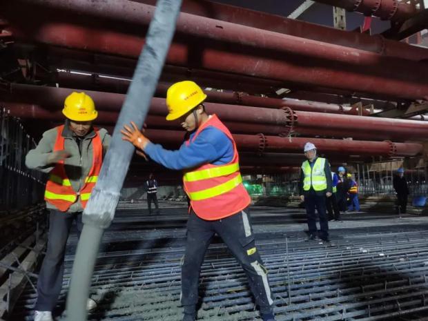 為保證首塊底板優質高效完成澆筑,項目部高度重視施工安全和工程質量,并充分做好施工前各項準備工作。一是確保項目管理人員和作業人員安全、技術交底到位;二是落實領導帶班制、旁站制及三檢制,嚴把混凝土原材料質量關,澆筑過程中技術人員全程盯控,嚴格按照施工工藝施工,實現質量控制目標;三是安全員從過程上嚴格監督安全隱患,堅持早發現、早報告、早解決,做好安全防范工作。