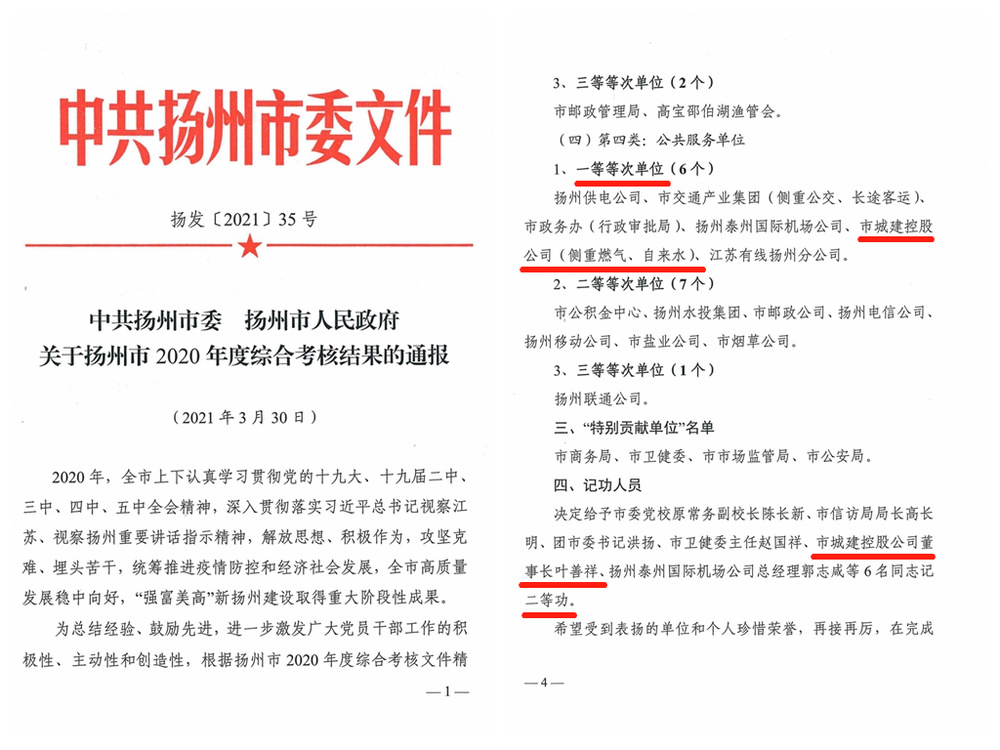成績代表過去,未來任重道遠。2021年,城控集團將緊緊圍繞市委市政府的工作重點,服從城市發展需要,全力實施重點項目和民生工程項目,全面建成潤揚路、運河南北路、萬福快速路等快速路網建設,實現大學路南延工程貫通,建成投產北山污水處理廠一期工程,加快推進市婦女兒童醫院等民生實事工程建設,造福揚州人民;充分發揮AAA效能,豐富類金融業務牌照,加快推進水務上市進程,為建設好、發展好揚州“好地方”作出新的貢獻,以優異成績向黨的百年華誕獻禮。