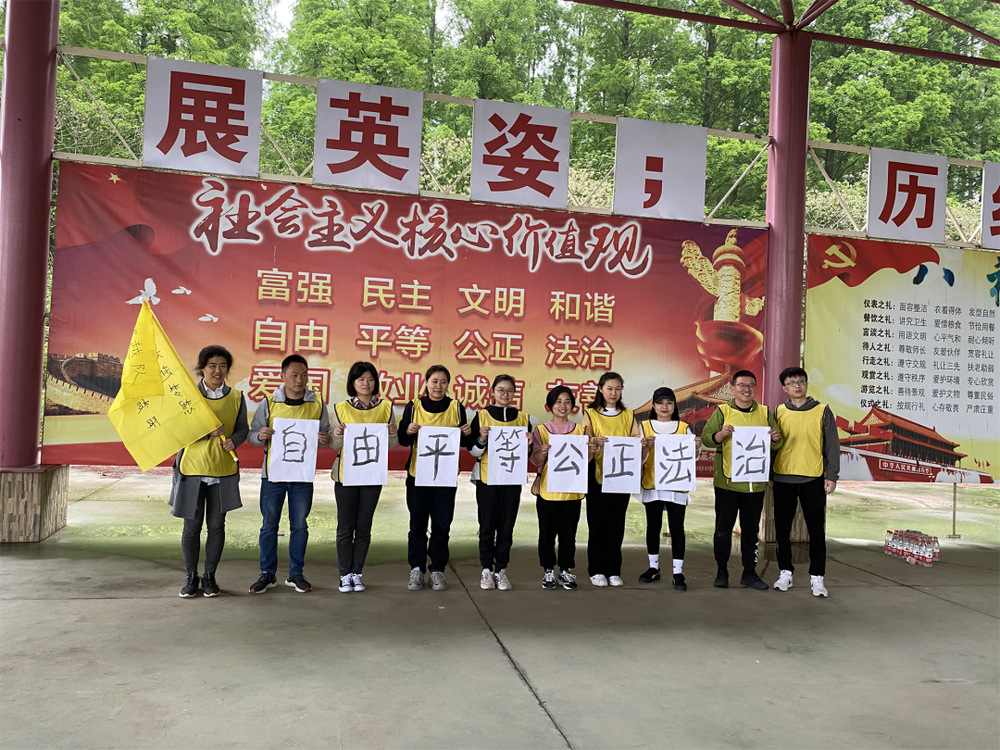拓展訓(xùn)練中,在教練員的引導(dǎo)下,通過(guò)開展一系列歡快的互動(dòng)性活動(dòng),營(yíng)造團(tuán)隊(duì)氛圍,建立互信基礎(chǔ),并將全體成員分成四個(gè)小隊(duì),每小隊(duì)分別推選出隊(duì)長(zhǎng)、副隊(duì)長(zhǎng),經(jīng)過(guò)共同協(xié)作、頭腦風(fēng)暴,一個(gè)個(gè)響亮的團(tuán)隊(duì)口號(hào)、富有特點(diǎn)的團(tuán)隊(duì)logo逐一精彩亮相,伴著青春活力、個(gè)性鮮明、充滿力量的“開心寶貝”“紅太陽(yáng)”“超越”“旗勝”隊(duì)名的產(chǎn)生拉開了拓展的序幕。