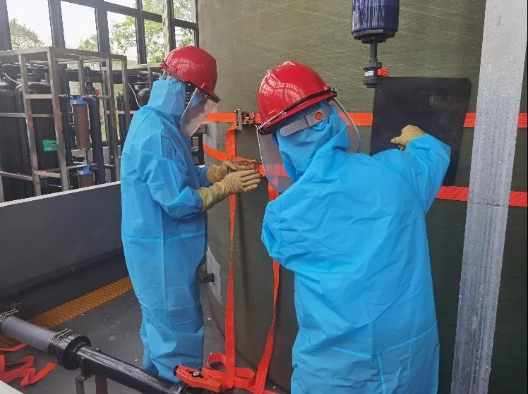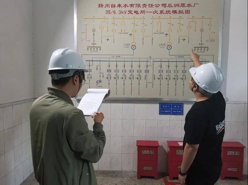在結合理論學習之后,加強生產人員應急處置和實操能力的演練。在演練環節,模擬瓜洲變電所在生產運行中35KV古洲線突發失電,值班人員啟動應急處置程序。班組人員按應急預案步驟切除相關高壓低壓開關設備,再經過一系列倒閘操作,迅速切換到到備用線路上,恢復了生產用電,并做好巡查匯報工作。演練采取實操方式進行,整個倒閘操作過程步驟有序,嚴格按照突發事故處理流程進行演練,嚴格使用規范的操作術語,對所涉及到的驗電、分合開關、檢查設備等操作符合安規要求,達到了預期效果。為強化危化品管理,提升員工應急處置能力。近日,頭橋水廠針對次氯酸鈉制備和管理的安全操作規程要求,組織了次氯酸鈉儲罐和投加管道泄漏兩個科目的應急處置演練,通過提升應急處置能力,不斷強化危化品的管理和使用。