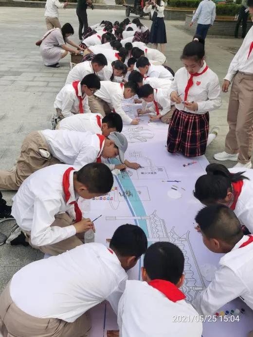 在雄壯的國歌中,活動徐徐拉開帷幕。揚州軍分區(qū)護旗隊,高舉國旗正步入場,并將國旗傳遞給少先隊員代表。隨后廣場響起清亮的少年先鋒隊隊歌:“我們是共產(chǎn)主義接班人,繼承革命先烈的光榮傳統(tǒng)......”,錚錚歌詞、響徹全場,回憶青春、心潮澎湃。最后,資產(chǎn)公司、廣陵消防救援站、團工委、東關街道婦聯(lián)等單位代表共同在噴繪上進行沙畫作業(yè),表達心中對建黨百年的衷心祝愿,少先隊員們也用手中彩筆描繪東關錦繡風光。