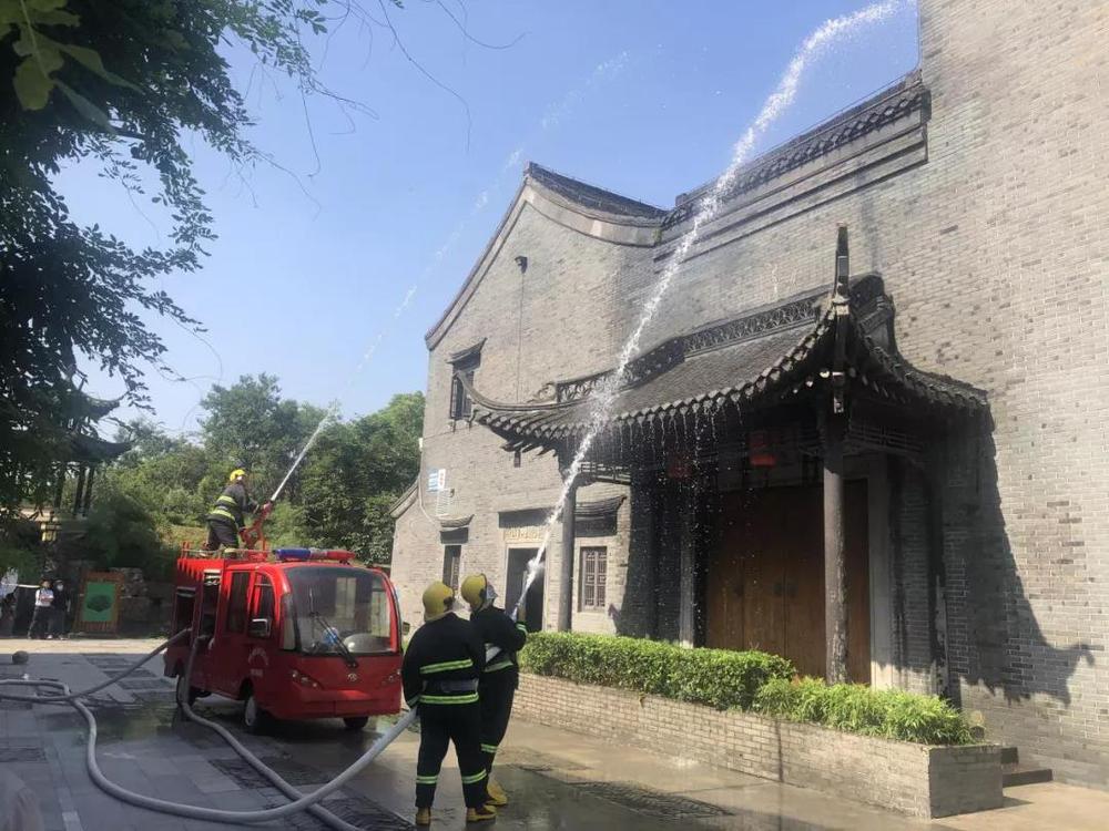 突然,街區(qū)一房頂出現(xiàn)不明煙霧,疑似發(fā)生火災(zāi)。保安人員迅速封鎖現(xiàn)場,拉設(shè)警戒帶,疏散人群,同時(shí)將微型消防車開進(jìn)現(xiàn)場,接水帶,并用高壓水槍對(duì)準(zhǔn)火源進(jìn)行撲救,在行云流水、一氣呵成的連貫性操作下,火災(zāi)險(xiǎn)情得到了有效控制。