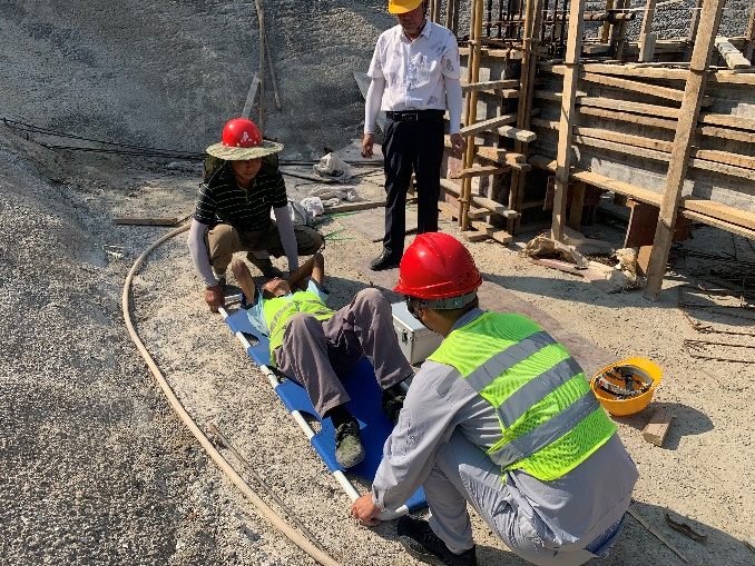 隨后組織施工人員開展了工人意外傷害事故的應(yīng)急演練,模擬工人突發(fā)意外墜落導(dǎo)致頭部傷害,由應(yīng)急組、急救組和警戒組三組協(xié)同配合,順利完成人員的模擬急救演練。此次演練不僅強(qiáng)化了項(xiàng)目部應(yīng)急小組的安全危機(jī)意識(shí),更提升了綜合應(yīng)急管理水平。