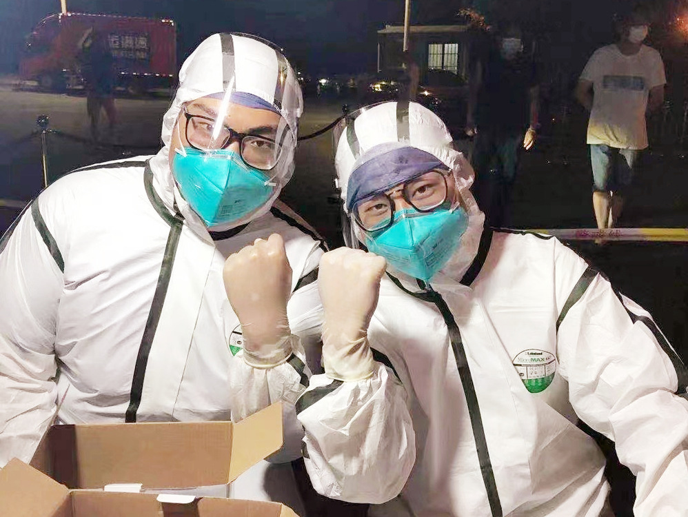 在核酸檢測(cè)點(diǎn),劉寶帥頭戴口罩面罩,身穿防護(hù)服,頂著炎炎烈日,引導(dǎo)待檢測(cè)人員進(jìn)行注冊(cè)、有序登記采集碼以及送樣等,全天完成社區(qū)核酸檢測(cè)6000枚。從白天到黑夜,忙碌奮戰(zhàn)14個(gè)小時(shí),防護(hù)服換了5套,手上皮膚也因長(zhǎng)時(shí)間戴防護(hù)手套,被汗水泡得浮腫發(fā)白,遇到不理解的群眾時(shí),還要微笑面對(duì)、耐心指導(dǎo),嗓子都沙啞了。問他一天下來(lái),感受如何?他沉默了片刻說(shuō)道“致敬所有醫(yī)護(hù)工作者,他們真的很偉大”。是啊!哪有什么歲月靜好,只是有人在替你負(fù)重前行。劉寶帥用自己的實(shí)際行動(dòng)踐行了他向黨組織靠攏的錚錚誓言,體現(xiàn)了他堅(jiān)定的入黨決心意志,在黨和人民需要的時(shí)候,挺身而出、不畏疫情,站在一線,為抗擊疫情、守衛(wèi)家園貢獻(xiàn)自己的力量。