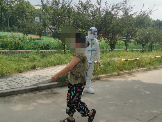 “阿姨,現在疫情防控很緊張,請大家居家不要外出,你要拿什么東西你跟我們說,我們替你跑腿,您知道病毒是怎么傳播噠,就是互相串哎!”