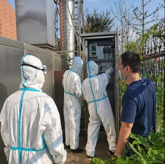 疫情期間,儀揚(yáng)河泵站除臭設(shè)備突發(fā)故障,為防止異味散發(fā),影響公共環(huán)境,公司第一時間組織保供預(yù)備隊維修人員進(jìn)行了設(shè)備搶修。在全面防護(hù)并做好氣體檢測的前提下,維修人員及時排查出故障,烈日下連續(xù)工作不停歇完成了搶修任務(wù),確保了泵站周圍環(huán)境環(huán)保、健康、安全。