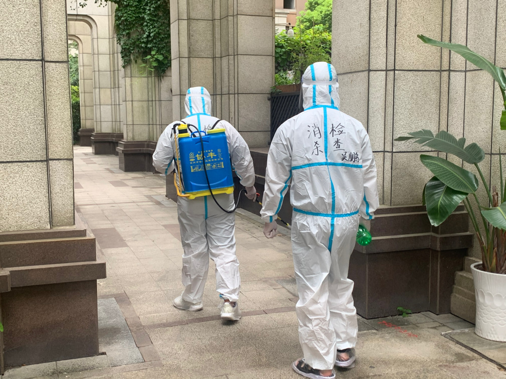 目前,京杭融園小區每天保持2至3次對小區全范圍消殺的頻率,主干道、垃圾池、電梯轎廂、電梯廳……一處都不會被錯過。特別是每隔一日的核酸檢測過后,物業還會組織保潔人員對小區再次進行消殺,重點對大家途經的道路、門廳、門把手、電梯等處進行消毒。
