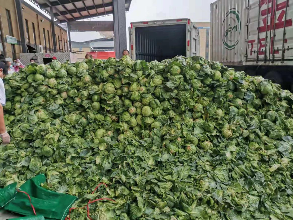 由于蔬菜數(shù)量龐大,為保障居民能夠及時拿到“愛心菜”,13:30,城控集團又從各志愿服務(wù)小組緊急抽調(diào)50名志愿者奔赴萬噸冷鏈進行現(xiàn)場支援。