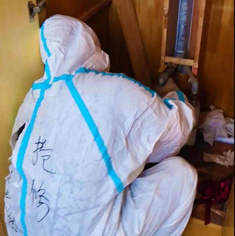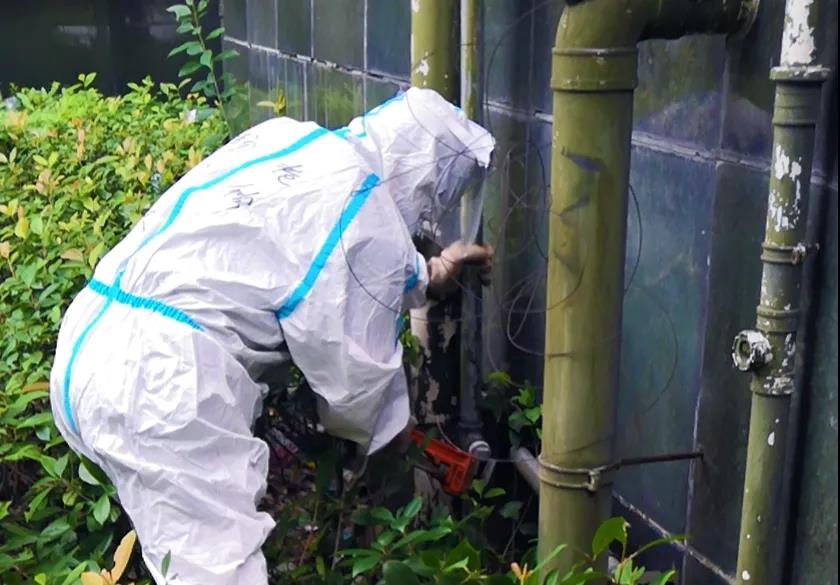 8月18日一大早,三名搶維修人員在完成核酸檢測后,驅車前往703業主所在單位與片警、物業代表匯合。上午8時許,搶修人員到達花樣年華小區,按規范穿戴防護用品,有序開展工作:拆除舊立管、更換新管道、緊固管件、氣密性檢測、復接表具、放散置換、儀器檢測、點火,立時燃氣灶迸發出蔚藍色的火焰。