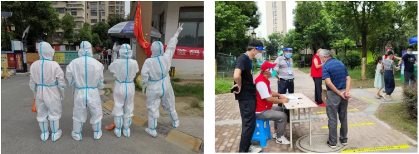 直至今日,在天福小區我們志愿者一共參與了10次核酸檢測,檢測時間較剛開始整整縮短了一個小時,當有排隊的阿姨給我們塞來降暑冰塊時,所有流過的汗、著防護服咬牙堅持的時刻,都化為值得二字!