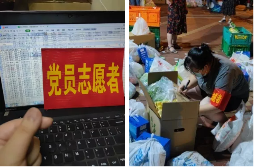 曹笑是一名軍嫂,她負責每日采集、統計全公司職工防疫情況,包括健康碼現狀、居住地風險等級、每日體溫、每日核酸檢測情況等。忙著工作的同時,她還負責自己小區4棟樓,80戶人家的日常訂菜與分發。白天時間安排的滿滿的,晚上她也不放松,她向社區申請了每天18點至24點封閉樓棟的站崗工作,已經有2個星期沒在家吃過晚飯了。有時夜里會有分菜、裝菜、送菜的臨時任務,她只要看見,都會抽空去幫忙。有一次,她站崗的一封閉樓棟居民因長久居家隔離,從窗戶爬上了2樓平臺,曹笑看見立馬對其心理疏導,在得知其只是想在平臺上吹吹風后,仍與他嘮嗑勸慰他換一種更安全的方式紓解壓力,最終成功勸返了該居民。