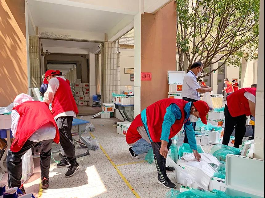 8月17日上午9時許,志愿者們接到社區緊急任務,從山東運來800箱愛心蔬菜馬上到,準備搬卸。根據社區統計,800箱蔬菜擬分裝4000份,盡快送到居民手中,確保每家每戶都品嘗到“愛心的味道”??紤]到社區只有電瓶三輪車,揚州中燃公司立即調來兩輛卡車,將志愿者分成5個小組,采用“流水線”方式分裝打包,裝車后由網格員、志愿者到每個樓棟負責發送。歷時9個小時,晚上6點多完成全部配送。置業公司志愿者李永生說:這一天下來,大汗淋漓,腰酸背痛,但看到居民感恩的笑臉,一切都值了。