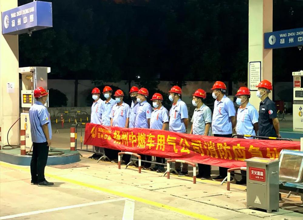 這是9月22日晚間揚(yáng)州中燃聯(lián)誼路加氣站組織開展的應(yīng)急演練模擬場景。為提高并適應(yīng)全天候處置車用氣加氣場站突發(fā)事故的能力,達(dá)到消除安全事故隱患,平穩(wěn)運(yùn)行的效果,本次應(yīng)急演練以模擬加氣機(jī)電磁閥泄漏、氣候干燥站外明火侵入場站繼而引發(fā)火災(zāi)兩個突發(fā)事件的全過程處置。