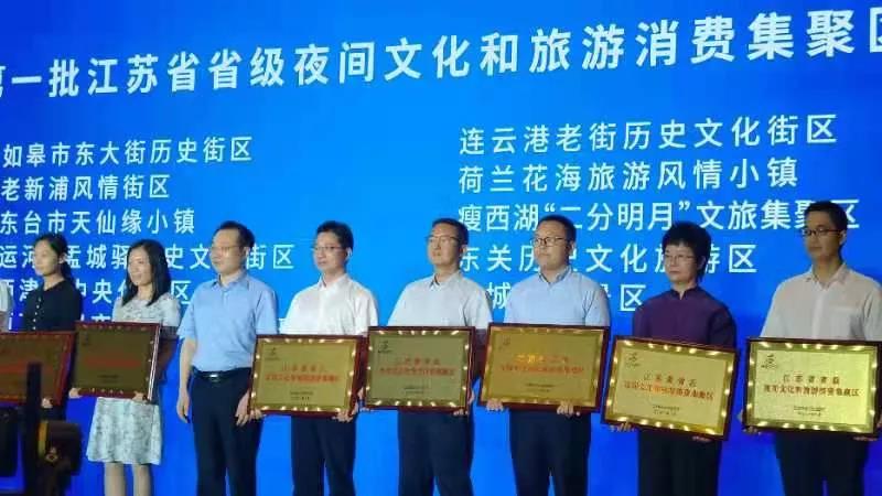 9月23日上午,江蘇省首批夜間文化和旅游消費集聚區(qū)授牌儀式在蘇州舉行,省文化和旅游廳黨組書記、廳長楊志純出席并授牌,城控集團東關歷史文化旅游區(qū)榮獲殊榮,城控集團黨委委員、名城公司總經(jīng)理戴興春作為代表上臺領取獎牌。