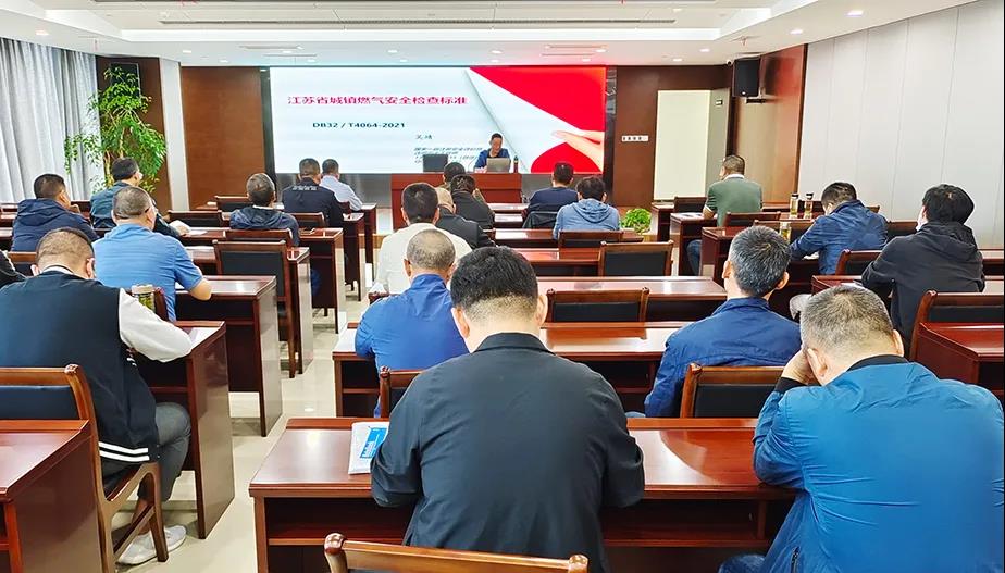 培訓(xùn)會(huì)上,吳靖詳細(xì)講解了“江蘇省城鎮(zhèn)燃?xì)獍踩珯z查標(biāo)準(zhǔn)”(2021年9月1日施行)主要修訂內(nèi)容、適用范圍和使用原則等新要求、新變化,逐一解讀了該檢查標(biāo)準(zhǔn)關(guān)于物料隔離、管道標(biāo)識(shí)、可燃?xì)怏w探測(cè)器等內(nèi)容。培訓(xùn)后,大家就自己在安全生產(chǎn)運(yùn)營(yíng)中遇到的問題,與吳靖進(jìn)行了探討和交流。