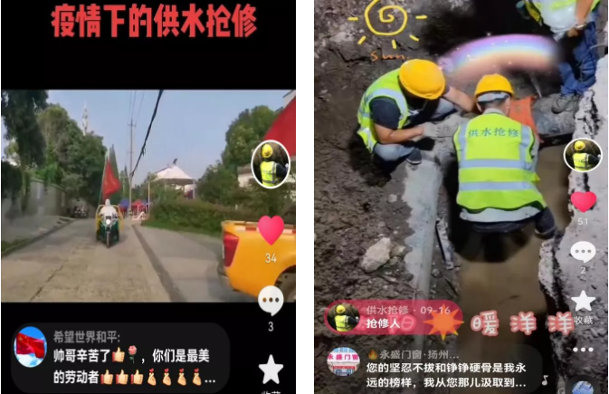 近年來,抖音、快手等短視頻APP盛行,成為許多人喜愛的應用軟件,長江水務搶維修中心順勢而為,抓準時機,在以年輕人為主要受眾的抖音短視頻平臺上,注冊“水網先鋒”抖音號,用15秒晉升新“網紅”。通過全方位、多角度發布供水搶修事跡、好人好事、黨建亮點等即時新聞,在傳播長江水務正能量的同時,也能和網友通過平臺留言的方式迅速解決用水訴求,發揮了“抖音”客服的作用。