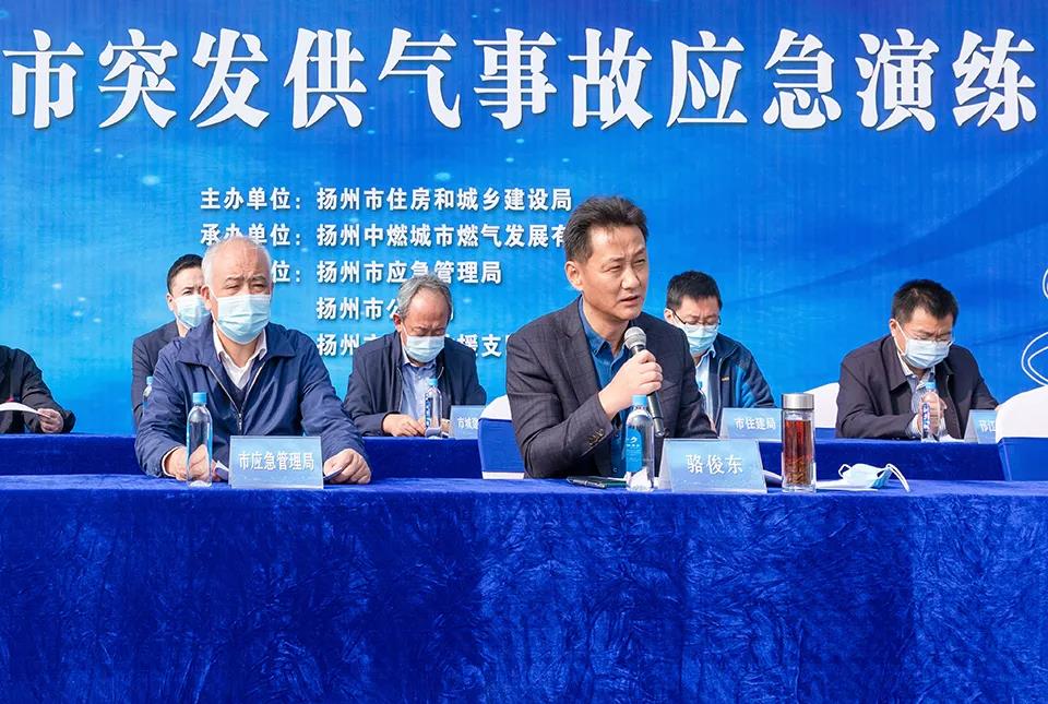 為檢驗應急預案的可操作性、可執行性,進一步提升公司處置突發供氣事故能力,11月3日,市住建局在揚州中燃LNG儲備站內開展突發供氣事故應急演練。市住建局四級調研員駱俊東擔任演練總指揮,市應急管理局、廣陵區、邗江區、經濟開發區、蜀崗—瘦西湖景區、生態科技新城有關負責人,市燃管中心負責人全程觀摩。公司主要負責人、用氣企業代表參加活動。