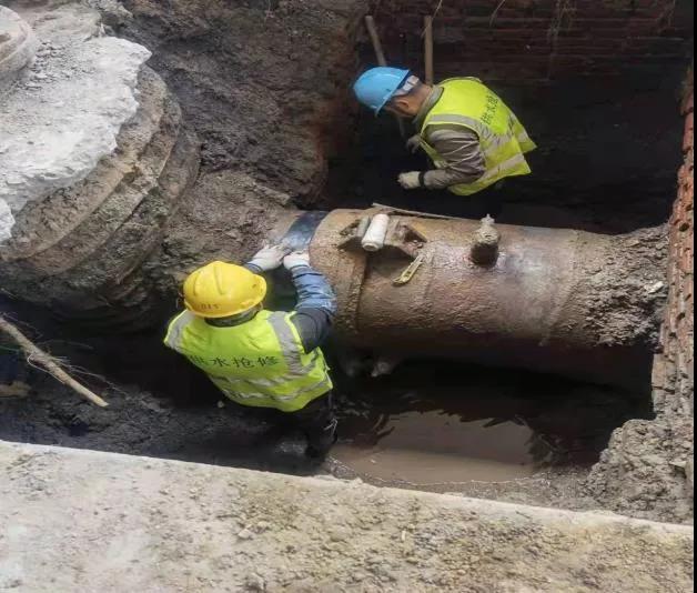 為確保搶修演練達(dá)到預(yù)期效果,長(zhǎng)江水務(wù)搶修部門充分論證應(yīng)急搶修預(yù)案,成立了現(xiàn)場(chǎng)應(yīng)急搶修小組,細(xì)化搶修方案,落實(shí)預(yù)案啟動(dòng)、基坑挖掘、管道維修等關(guān)鍵步驟,演練突出“精心、精準(zhǔn)”,即“精心準(zhǔn)備,精準(zhǔn)搶修”,達(dá)到了預(yù)期演練的目的。這次搶修的DN800鋼管,漏水部位需要加裝補(bǔ)漏器,在搶修演練之前,長(zhǎng)江水務(wù)搶修部門提前訂制鋼管補(bǔ)漏器備用,保障搶修應(yīng)急需要。
