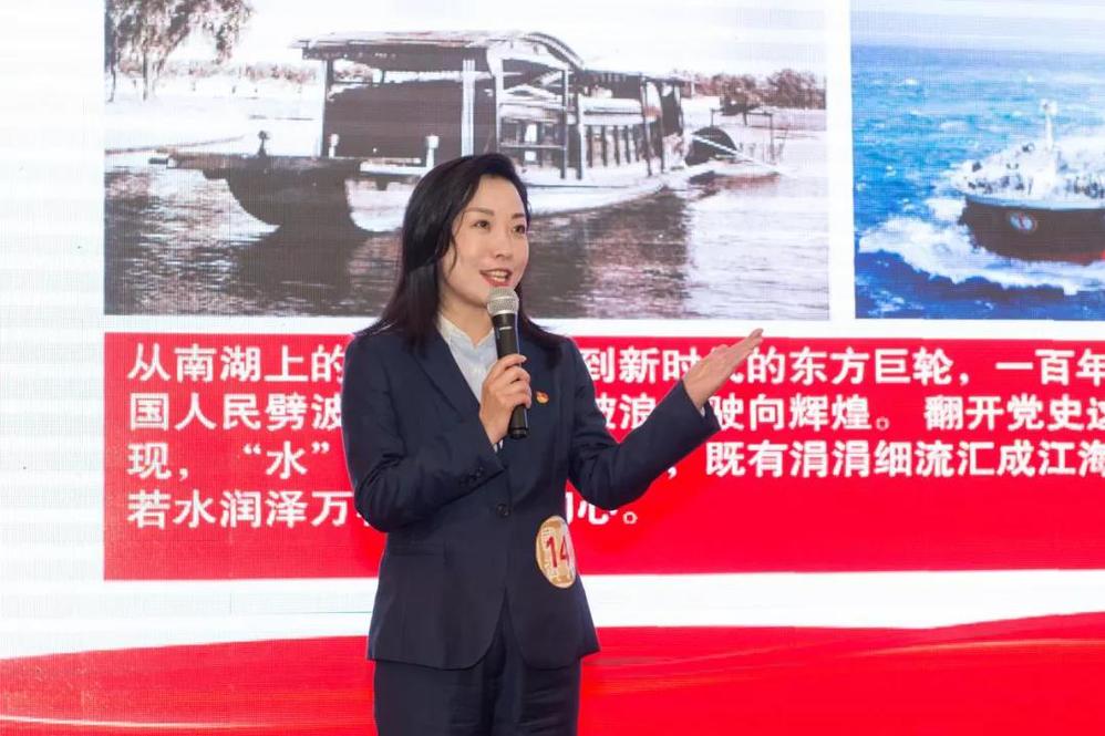 其中,主講人林啟迪用激昂的語言和真摯的情感,通過講述自己親人在抗美援朝戰爭中壯烈犧牲的英勇故事以及言傳身教給孩子播撒紅色信仰的種子,賡續紅色精神血脈的故事,講述了黨員的信仰信念與忠誠擔當,帶來深具感染力的黨課;主講人仇偉結合長江水務的歷史,在“小切口”中展現水務人愛黨、愛國、愛業的熾熱情懷和斗志昂揚、奮發向上的精神風貌的“大主題”,用慷慨激昂、聲情并茂的宣講了建黨百年風華。