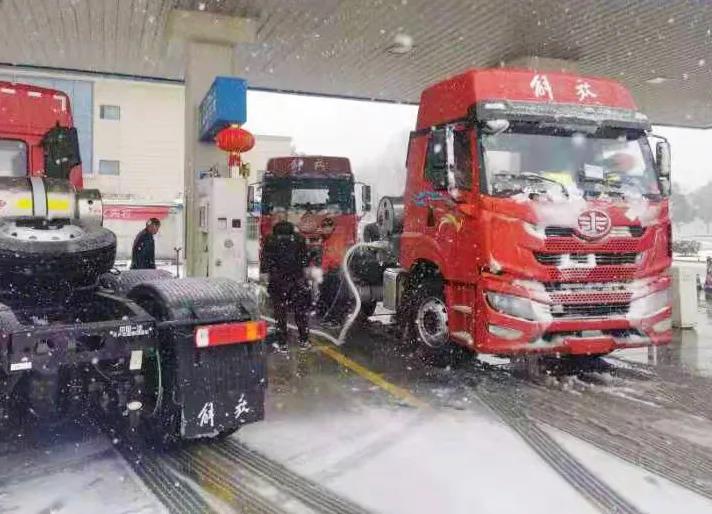 加氣站點內前來加氣的公交車、出租車和重卡車輛絡繹不絕。為保證城市客運和過境重卡車用天然氣燃料的正常補給,加氣操作工們毅然守護在第一線,無畏風雪、年復一年地將看似簡單的操作零差錯地完成。