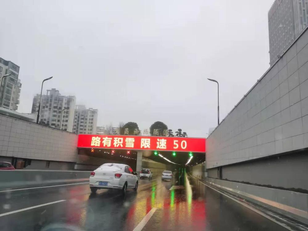 同時,實時監控快速路重點路段、隧道通行情況,落實專人每隔1-2小時進行道路巡檢、設備排檢,發現影響通行的路段,第一時間通知應急人員進行處置,全線泵房、交安、照明等設施均運行正常。在快速路各出入口處設置專職疏導員,積極服務市民出行。