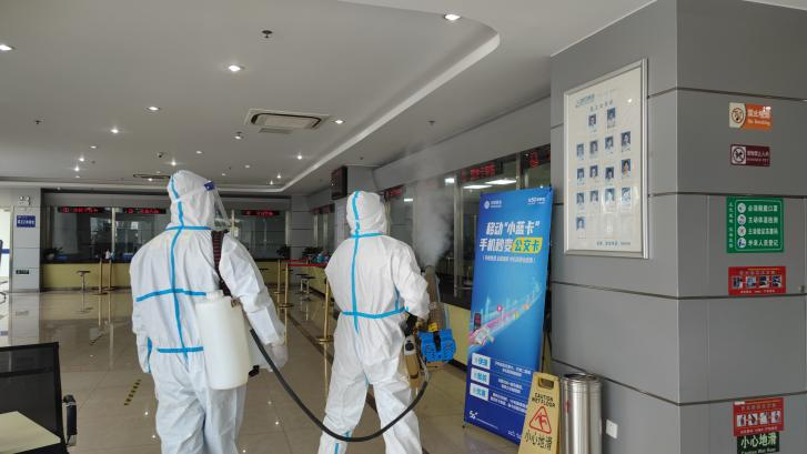 中午12點,“藍天救援隊”的隊員們身穿防護服,手持彌霧機,采用“地毯式”的消殺方式,對鴻福營業廳、文昌營業廳和公司辦公樓的樓梯、走廊、垃圾桶、廁所及公共區域進行全面細致的消毒,不遺漏每一個角落,特別是營業廳的柜臺、等待區、垃圾桶等重點區域,進行反復多次消殺,為市民卡疫情防控工作筑起了一道嚴實的防疫屏障。救援隊員們身負幾十斤重的消殺藥品穿梭于樓道之間,在時間緊任務重的情況下,依然保證著工作質量,體現了救援隊的專業素養。