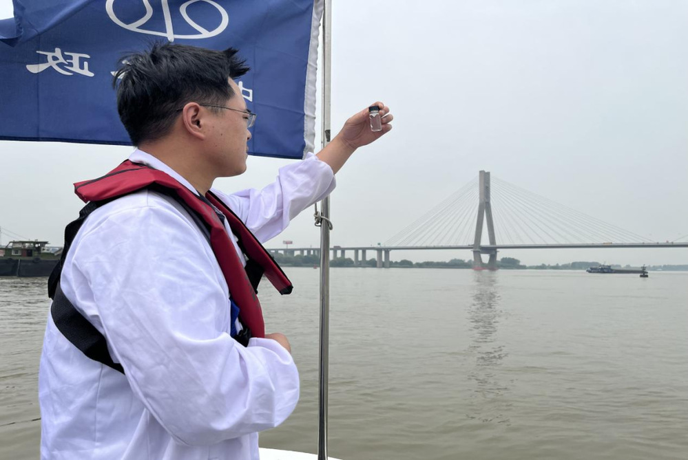 在瓜洲取水口的江面上,公司水質檢測中心工作人員現場采集了水質樣本,并進行濁度、含氧量等指標初期化驗,指標均為合格。