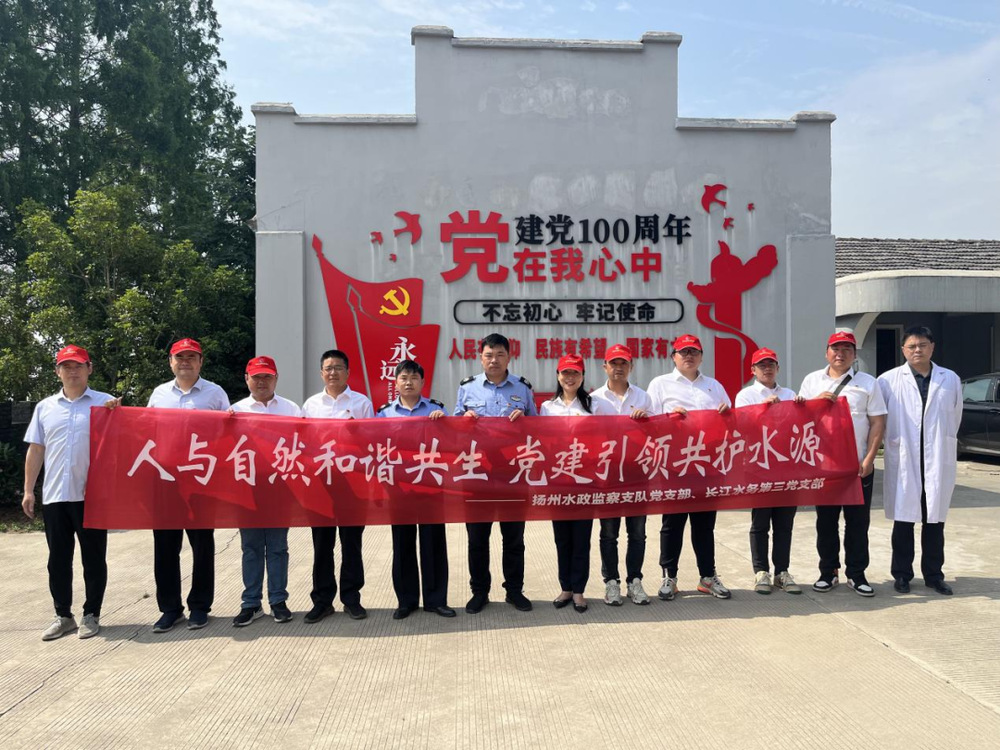 在6月5日“世界環境日”到來之際,長江水務第三黨支部聯合揚州市水政監察支隊黨支部共同開展“人與自然和諧共生 黨建引領保護水源”主題黨日活動,旨在加強長江水源保護宣傳,用實際行動助力揚州這個“好地方”環境越來越好。