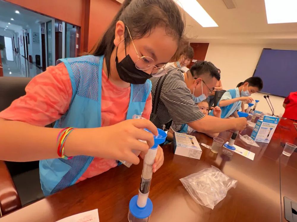 學(xué)生們回到環(huán)保公益課堂上,在了解污水凈化知識原理后,親自動手安裝小型凈水過濾器,在小實驗中看到渾濁的污水變得清澈,不禁發(fā)出陣陣驚嘆,對污水處理的具體流程有了更加直觀的感受,在動手中加深了環(huán)保意識,紛紛爭當(dāng)凈水小衛(wèi)士。
