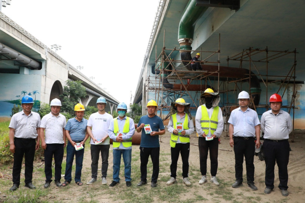 活動中,公司志愿者來到東部及南部主干線熱網工程二期建設現場,對臨河涉水施工、應急設施配套、工地消防管理和安全技術交底等情況進行了督導檢查,并結合存在問題,為施工人員普及了汛期高溫施工安全注意事項及具體防范措施。隨后,志愿者向施工單位管理人員宣貫了施工企業安全生產管理規范及其法定安全職責,現場發放了《安全生產法》最新修訂文本、《揚州公共安全教育警示》《“四不傷害”從我做起》等安全法律法規手冊和宣傳折頁,引導工程項目全員樹牢安全理念,規范安全管理,提高事故防范與處理能力。