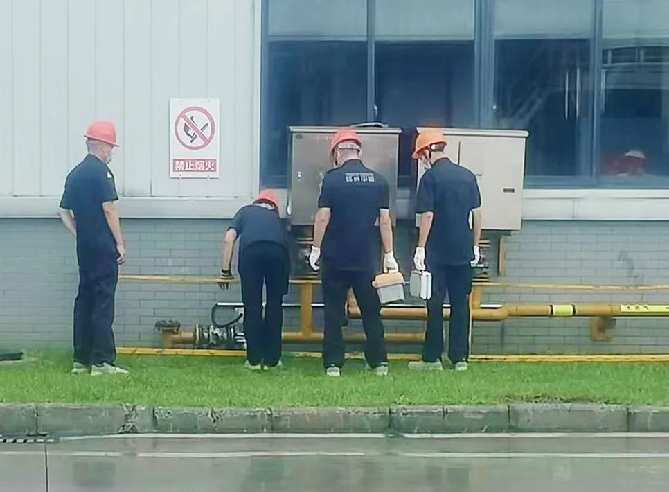 演練模擬用戶在自行檢查過程中發(fā)現(xiàn)中壓DN150鋼管法蘭接頭存在燃?xì)庑孤⒓磽艽驌P(yáng)州中燃客服熱線報(bào)修,同時(shí)向公安、消防報(bào)警請(qǐng)求支援。接報(bào)后,公安、消防和揚(yáng)州中燃迅速趕赴現(xiàn)場,疏散人員,切斷氣源,稀釋氣體濃度,控制事態(tài),實(shí)施搶修作業(yè)。通過各單位通力合作,順利排除險(xiǎn)情,修復(fù)泄漏管道,恢復(fù)正常供氣。
