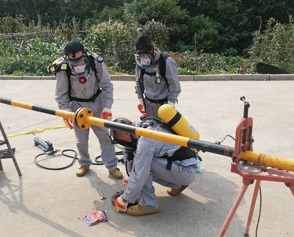 賽前,市經濟技術開發區、邗江區、廣陵區、江都區、儀征市、寶應縣、高郵分別組織了選拔賽,經選拔后共有7支代表隊參加正式比武,每隊3名選手。比武設定場景模擬液化石油氣儲罐根部法蘭泄漏,各隊采用統一制作的工藝管道法蘭模型、帶壓堵漏工具和人體防護裝備實施搶修作業,現場全部為實操比賽。