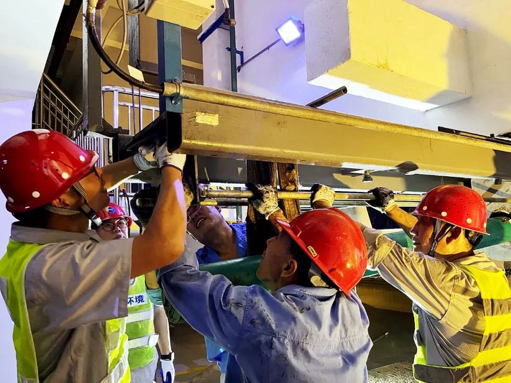 “蒸汽系統關閉,主體設備污泥走空,我們一會到……”8月22日晚19點18分,公司運營維護部接到當班生產人員報修電話,經初步判斷是污泥傳輸系統鬧起了“脾氣”。19點52分,公司運營維護部全體人員到達現場,經現場確認發現是污泥傳輸泵定子發生損壞。找到“癥結”后,他們迅速戴上安全帽,穿上安全背心,這一瞬間,他們化身為夜間的“逆行者”,與時間展開了一場賽跑,應急搶修行動正式拉開帷幕。