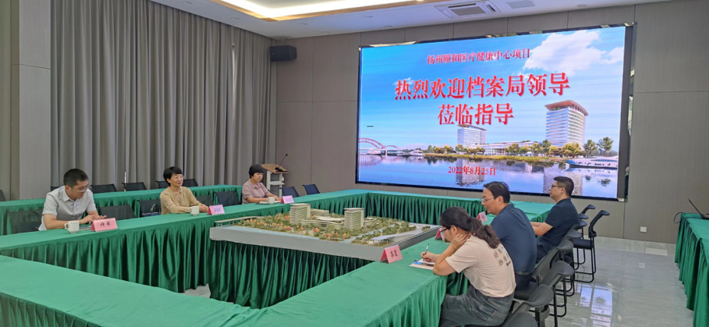 8月25日下午,市檔案局副局長薛曉軍帶隊來揚州頤和醫療健康中心項目現場檢查指導重大項目檔案管理工作。