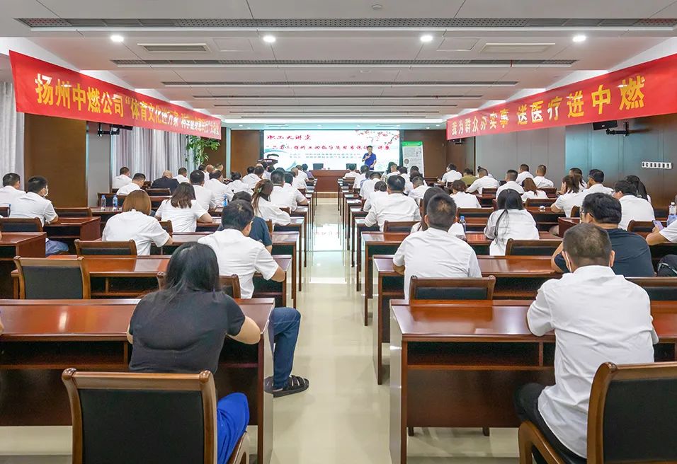 為進一步提高廣大職工健康保健意識,結合公司職工健康體檢情況,8月26日下午,揚州中燃公司工會舉辦第二期“職工大講座”。本期特邀揚州市體育康復醫院慢性病管理兼運動醫學科主任醫師虞海流開展“醫學向黨 健行利民”暨“三高”人群的運動指導及日常保健專題講座。公司黨委副書記、職工代表100余人參加。