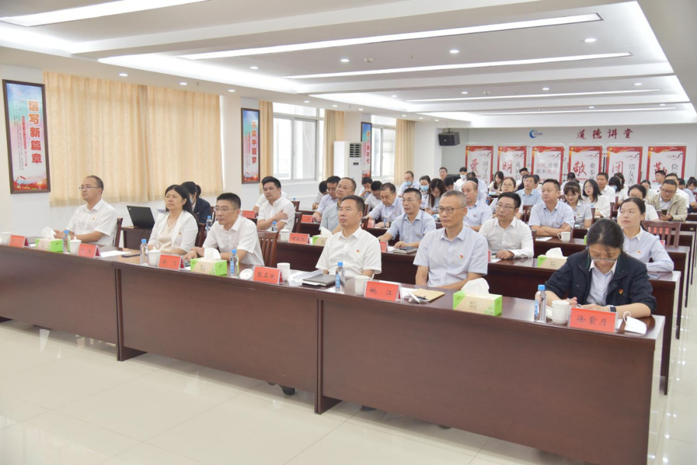 8月31日下午,集團在長江水務公司舉辦第三場“禮贊新時代 追夢復興路”黨課宣講報告會。集團黨委副書記徐飛,集團黨群部負責人,公用控股、長江水務公司領導班子成員、基層黨支部書記、中層干部和黨員代表、職工代表共計約50人參加活動。