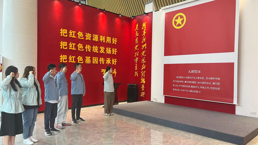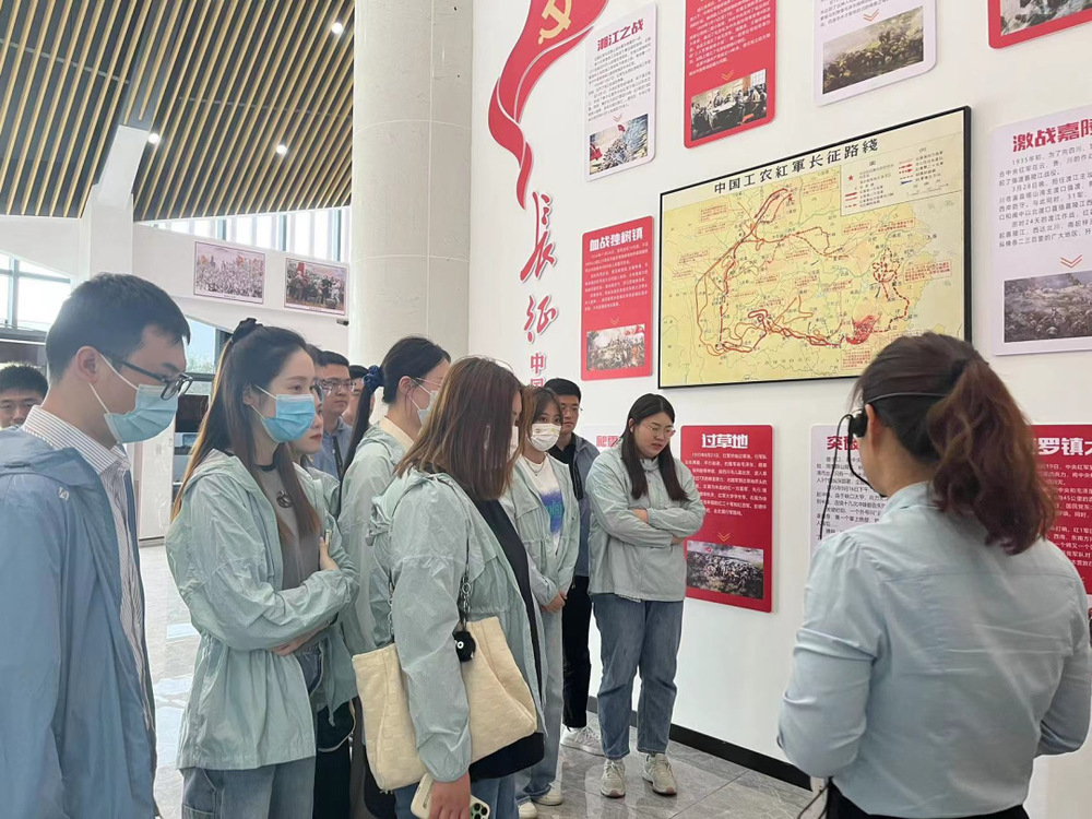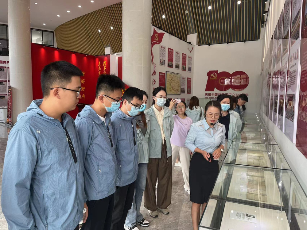 一進入黨史文化公園,大家都被這里的“紅色文化”氛圍吸引了,在公園內的兩座先烈銅塑,展現了革命烈士為新中國成立拋頭顱、灑熱血的戰斗畫面。全體青年職工懷著崇敬的心情,參觀了黨史文化公園初心館,追尋紅色足跡,瞻仰革命先烈的事跡圖片和歷史實物,通過講解員的講解和游覽紅色VR數字展館,回顧黨史、長征史、共青團史,瞻仰了革命先烈為共產主義事業奮斗終身的堅定決心,并在此紅色革命圣地重溫了入團誓詞,傳承偉大革命精神。