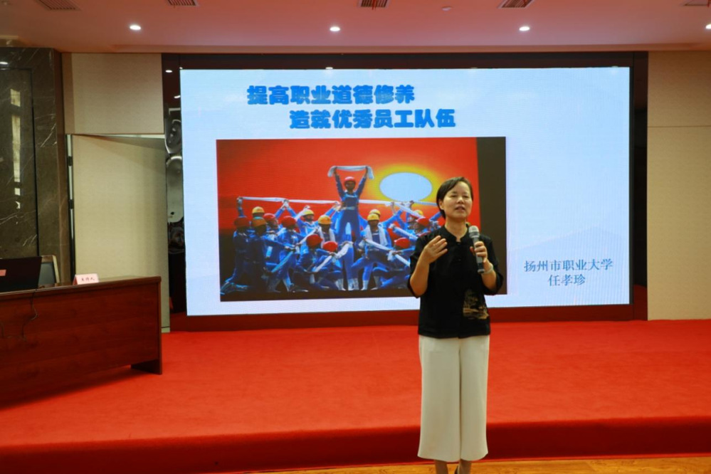 為進一步提升職業道德修養,強化責任擔當,貫徹落實意識形態工作,促進干部員工以飽滿的工作熱情和嶄新的精神風貌投入到工作中,形成愛崗敬業、誠實守信、團結協作的良好局面,9月26日,供熱公司特邀揚州市總工會“義工教授”、揚州職業大學旅游學院副院長、副教授任孝珍授課。