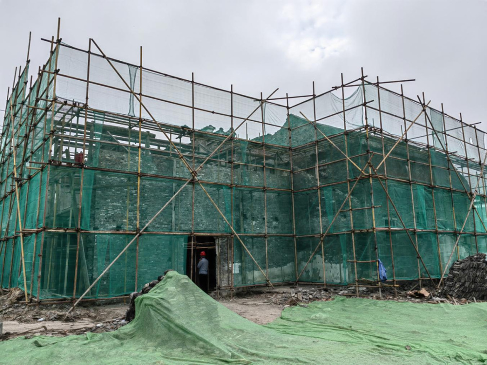 本次修繕建筑面積約800㎡,通過現場查勘,醬園臨街店面采取揭頂不完全落架大修,其余建筑落架大修,進行墻體、屋面修整。目前已完成腳手架搭設,完成了屋面、墻體(除需要保留的墻體外)拆除,對保留的木構件進行了白蟻防治等工作。在施工過程中,名城公司將做好揚塵管控、噪聲管控等相關工作,對周邊百姓的影響減少至最低,整個項目力爭12月底前完成。