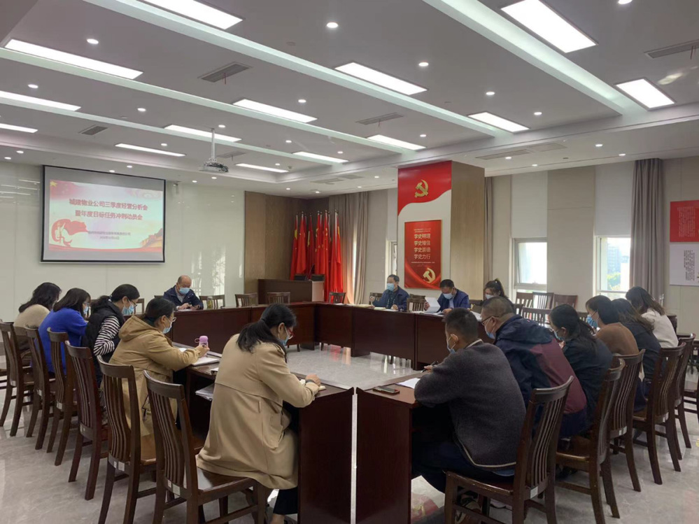 10月12日上午,城建物業公司召開2022年三季度經營分析會。會議回顧總結了前三季度各服務項目經營情況,客觀分析了當前面臨的問題及原因,并對第四季度的重點工作和沖刺全年目標任務進行了安排部署。物業公司分管領導、各項目負責人及相關工作人員參加會議。