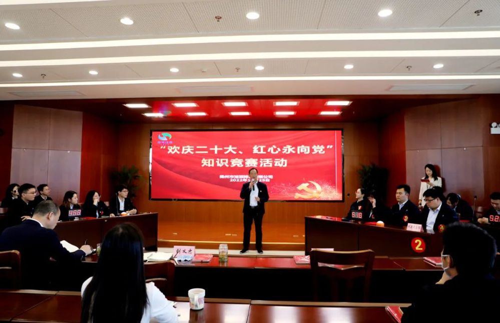 為熱烈慶祝黨的二十大勝利閉幕,10月25日下午,揚州市潔源排水公司組織開展“歡慶二十大、紅心永向黨”知識競賽活動。