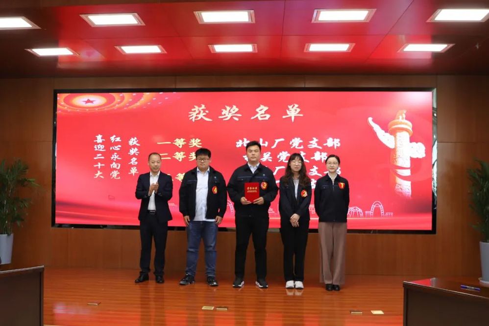 經過激烈角逐,北山廠黨支部代表隊四位選手以扎實的理論功底和默契的搶答配合,獲得本次知識競賽活動一等獎,機關黨支部以一題之差獲得二等獎,湯汪廠黨支部、六圩廠黨支部同樣表現優異,共同獲得本次競賽三等獎。