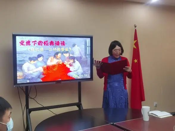 黨旗下的經(jīng)典誦讀中,黨員和積極分子代表分別誦讀了《艱難的國運與雄健的國民》和《繡紅旗——江竹筠贊歌》,讓大家從思想覺悟上汲取經(jīng)典的精神養(yǎng)分,一聲聲滿懷激情的誦讀聲獲得與會人員的熱烈掌聲。