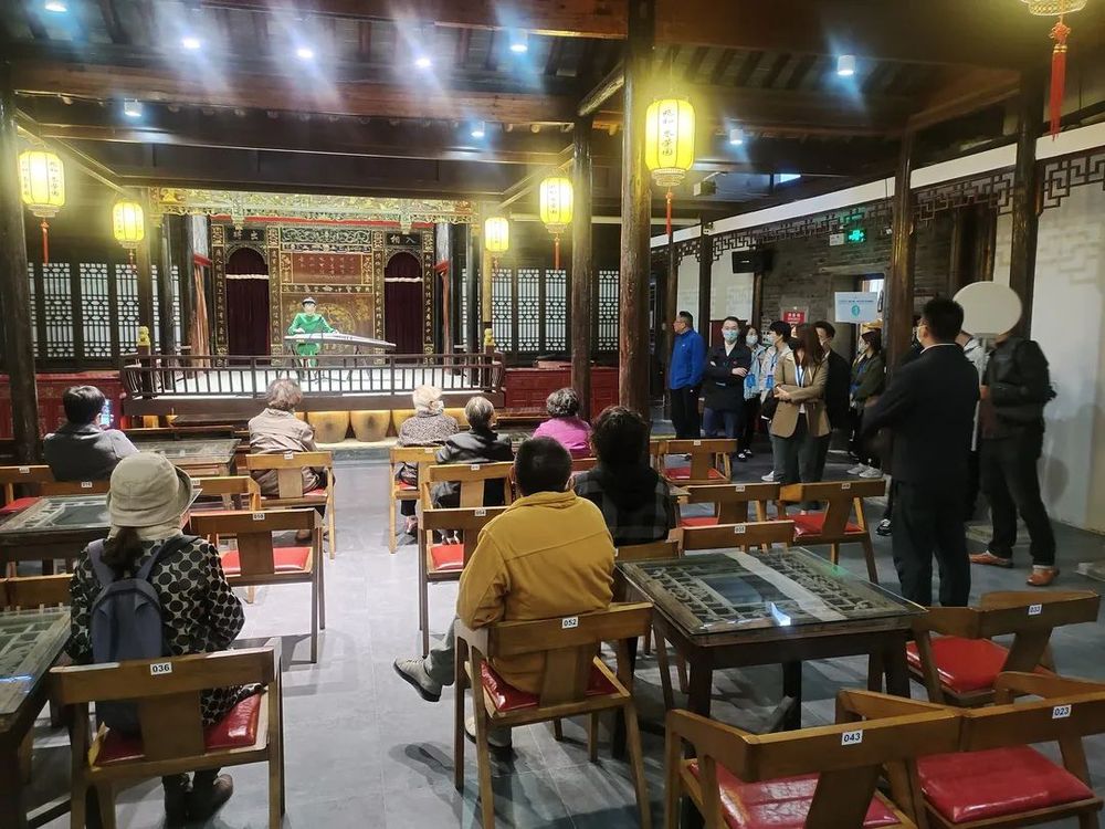 考察組一行先后參觀冬榮園茶社小劇場、謝馥春研習所、街南十二景、東關古戲臺,詳細了解當地小劇場建設、文化形態、文旅融合、產業效益等情況,對東關街景區近年來加快文化基地建設、加強文旅融合發展給予高度肯定和贊揚。